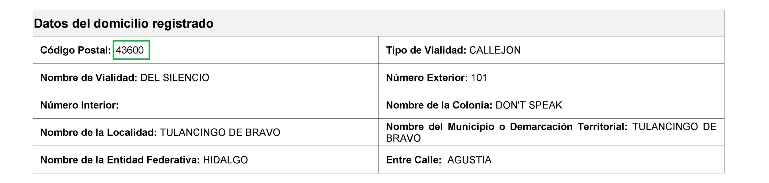 También debes considerar que debes colocar el código postal según la constancia de situación fiscal, ejemplo: