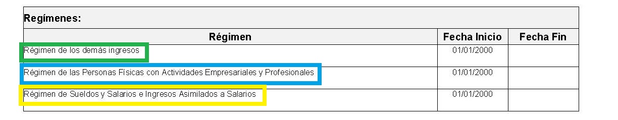 Así mismo de tu misma constancia de situación fiscal debes obtener el régimen fiscal en el que tributas, cuando tengas varios regímenes debes de emitir y/o recibir un CFDI dependiendo del régimen fiscal en el que recibiste los ingresos y/o en donde lo vayas a deducir, ejemplo: